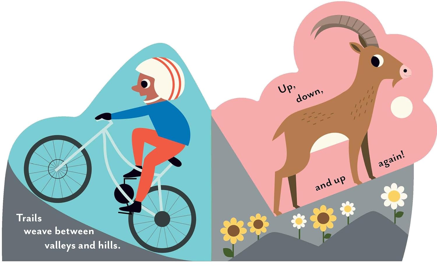Gear up for baby's first wilderness adventure! Hike beside mountain lakes, pedal down rocky hillsides, and swoop across snowy ski slopes in this board book by celebrated illustrator Ingela P Arrhenius. Each uniquely shaped page overlaps with the next to create a complete landscape when closed and an immersive world to explore when open. Simple text and vibrant illustrations introduce babies and toddlers to the many ways of enjoying time in the great outdoors.