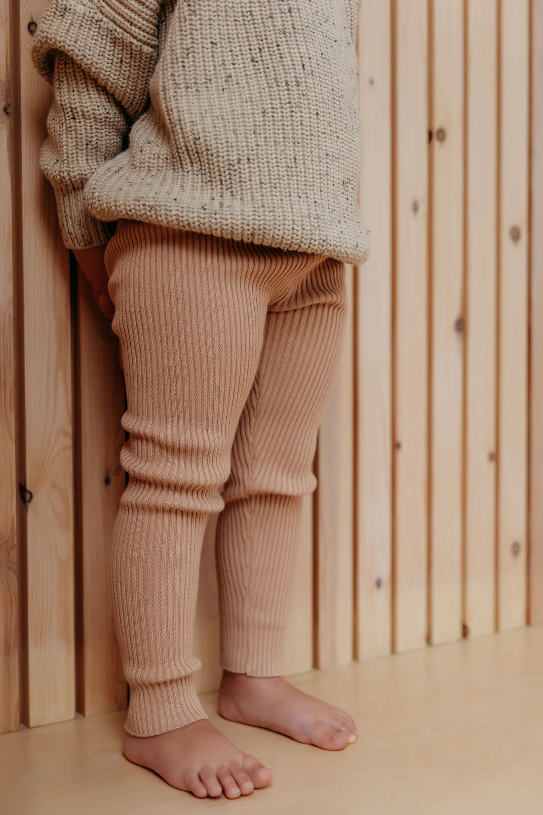 Peachy Noa leggings, made from 100% cotton. Available from size 0-6 months up to 7-8 years. Can be worn with the matching bodysuit for a cute little set for the tinies or pair with a slouchy knit for the big kids.