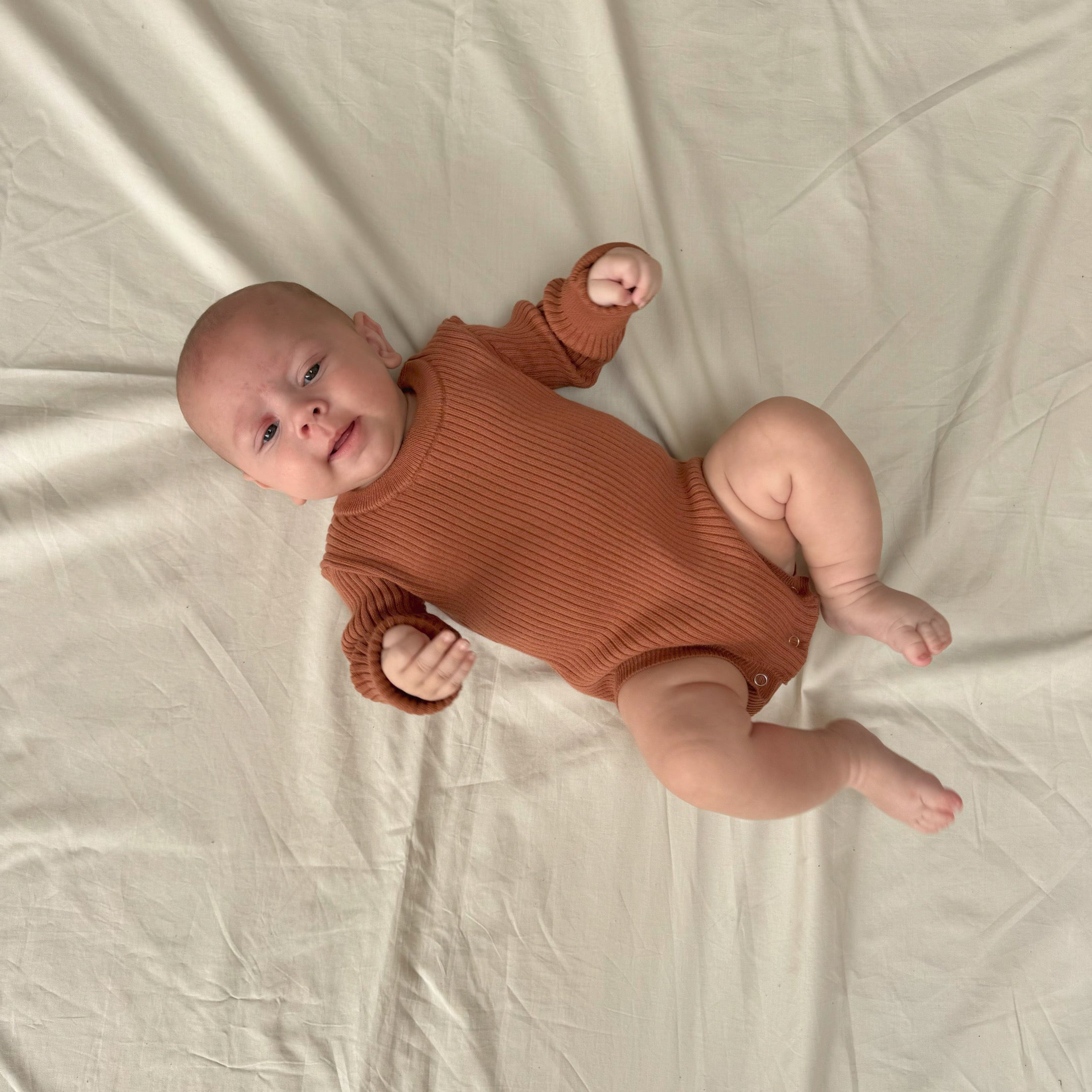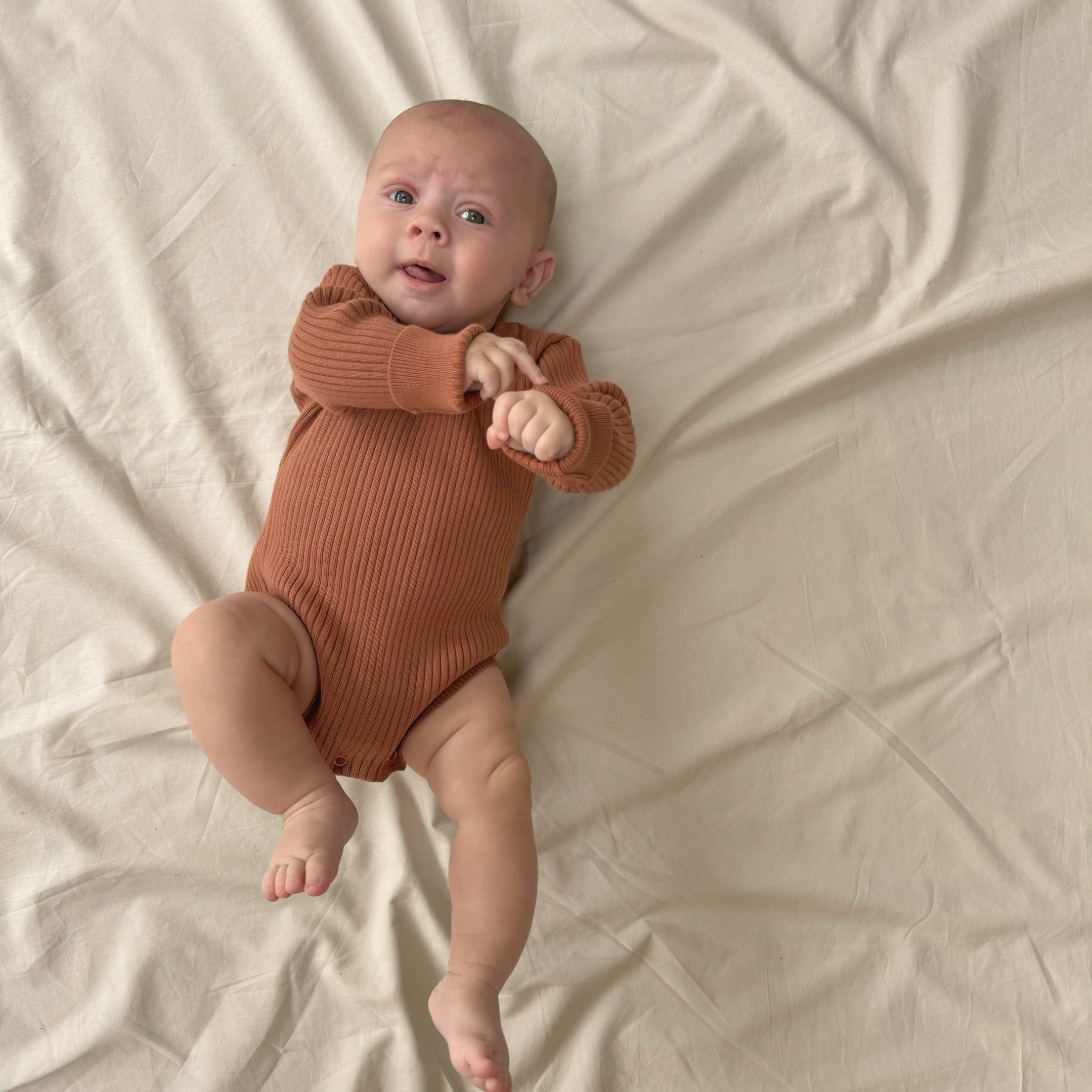 100% cotton bodysuit with a soft rib textures and poppers at the crotch.
