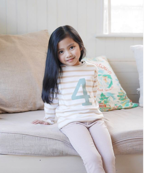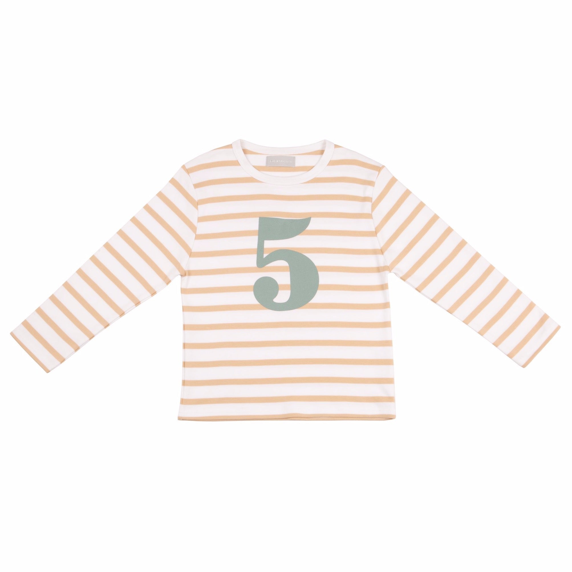 Biscuit & white breton striped cotton T shirt, featuring a green number 5 screen print. The perfect birthday gift, can be worn on the big day and throughout the year until the next big day comes around!