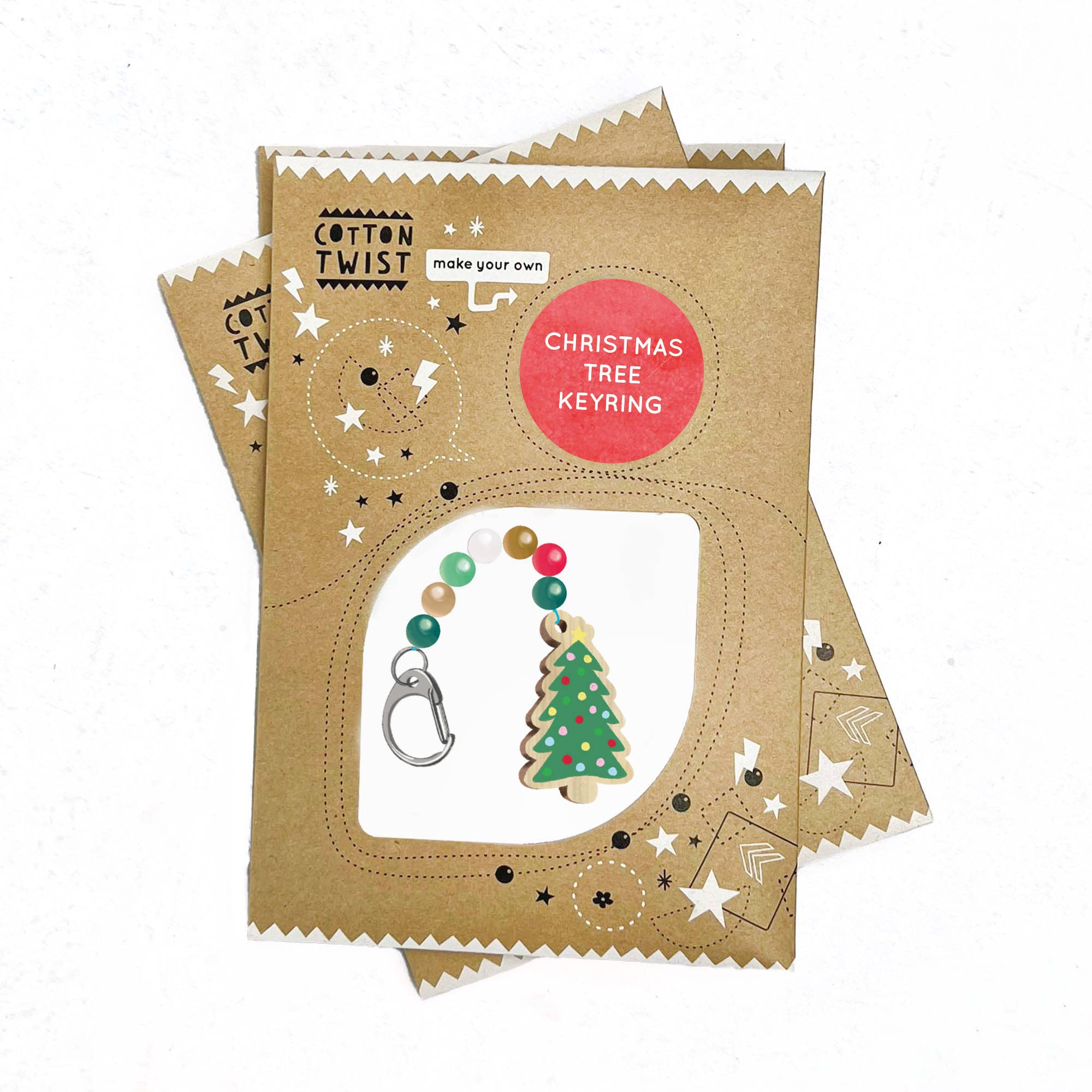 This festive keyring making kit includes all the essentials for young creators to make their very own Christmas keyring. At the heart of the kit is a delightful wooden Christmas Tree fob, crafted from eco-friendly wood for a touch of rustic holiday charm. Accompanying the fob are a selection of wooden beads in various colours, encouraging creativity and personalisation. To make crafting easy and enjoyable for small hands, the kit includes elastic with metal ends, specially designed to help thread the beads.