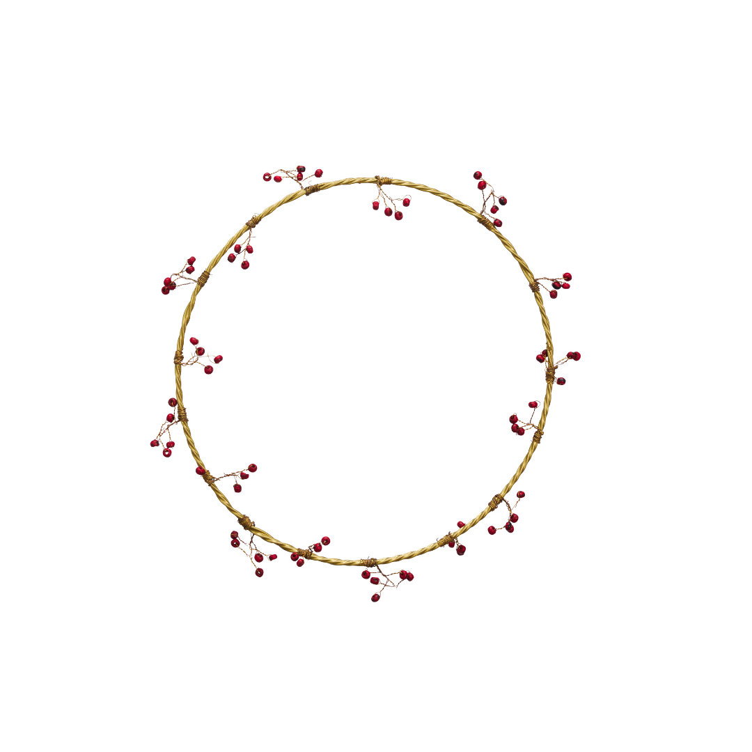 This stunning iron wreath is a versatile addition to any festive setting. Crafted with care in India, it combines iron, brass, and wooden beads to create a harmonious blend of antique brass and red tones. The piece is handcrafted with precision, reflecting the essence of traditional craftsmanship. It is ideal for Christmas decorations and can be elegantly displayed on walls or doors, adding charm to any environment.