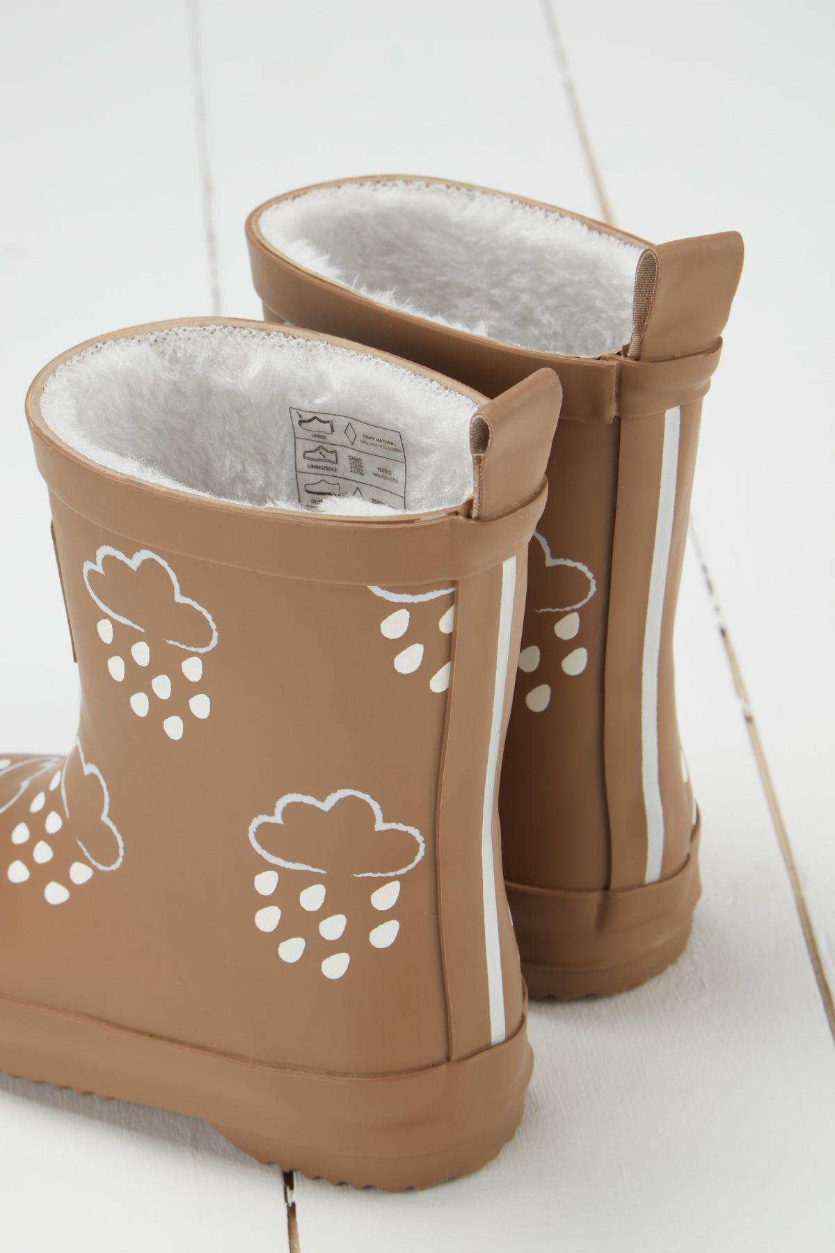 With a thick teddy bear fleece lining for extra warmth on cold days. In these ochre yellow kids wellies little ones can splash in puddles, rain, and snow whilst marvelling at the colour-changing raindrop patten. Winter welly boots are available in infant sizes 3-13 and come with a draw string bag.