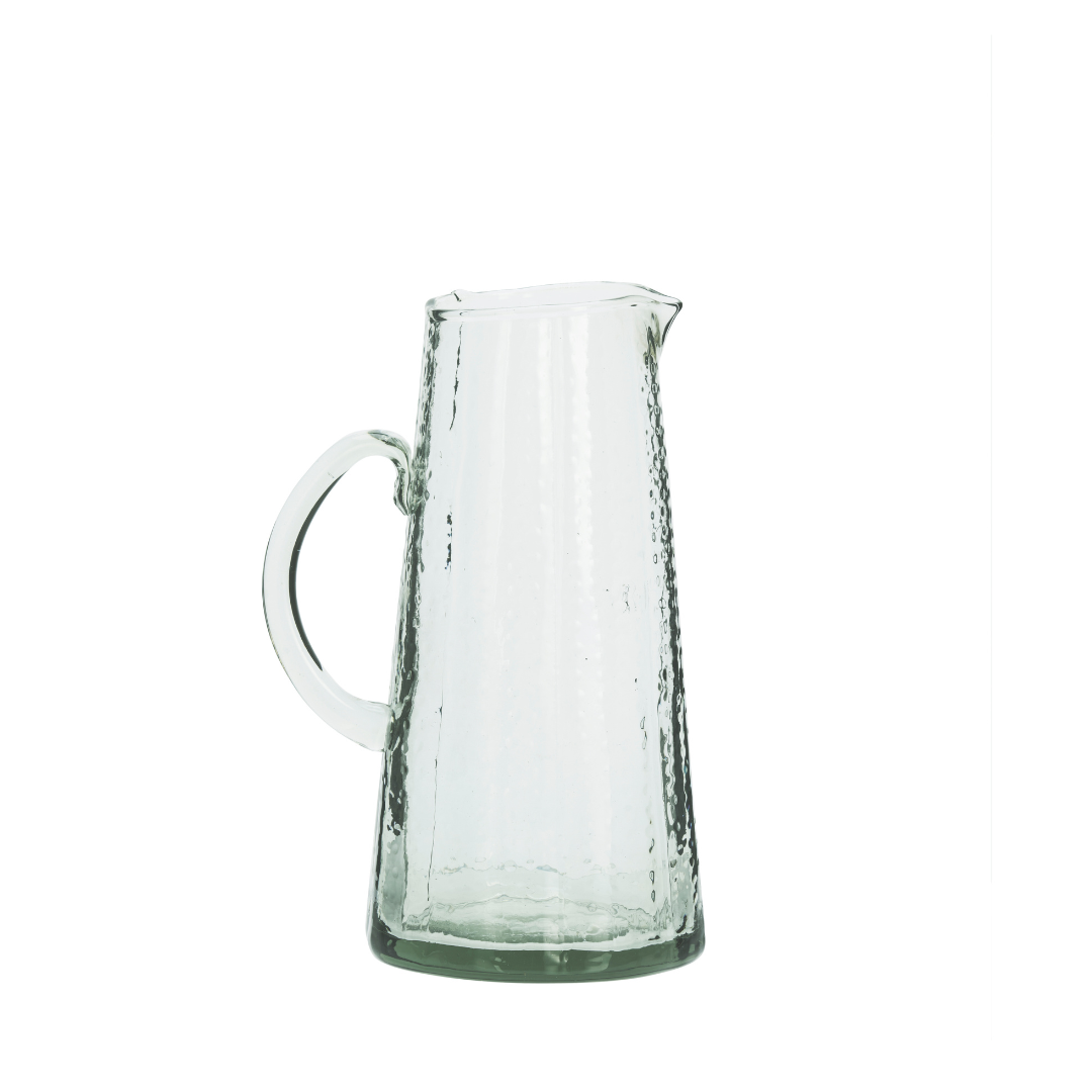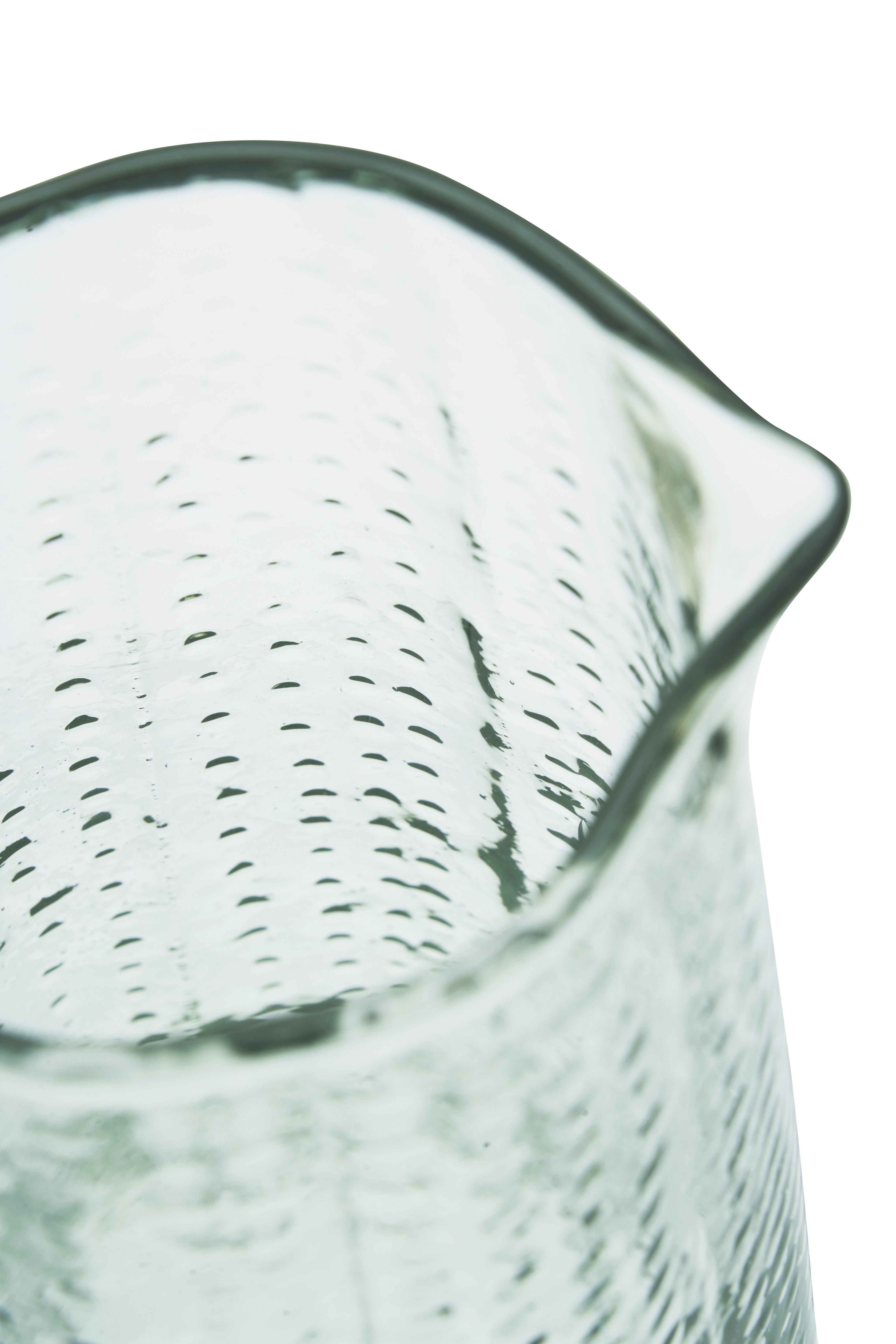 Originating from Firozabad, India's renowned glass manufacturing hub, this jug exemplifies classic design and functionality. Crafted from clear glass, it features a subtle dotted pattern that suits various table settings. Its capacity is suitable for serving an entire family, making it both practical and versatile. The glass is partially recycled, showcasing a commitment to sustainable production.