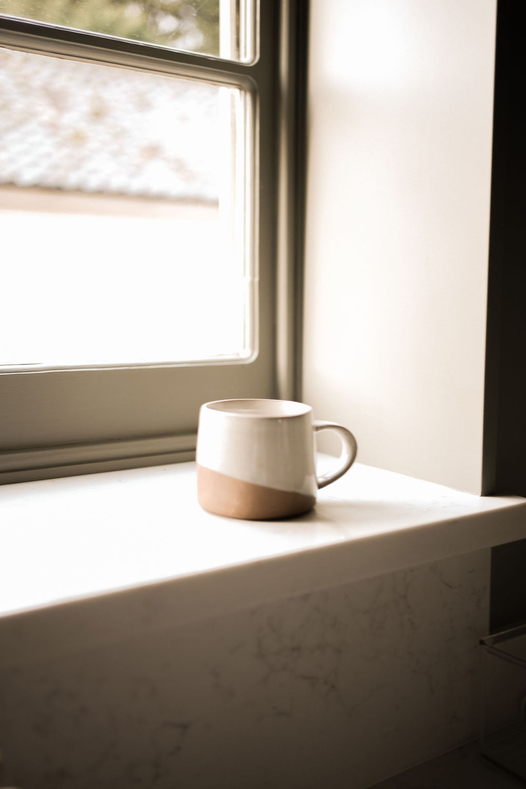 Each mug is hand dipped so the finish will vary from piece to piece. Depending on where the item is placed in the kiln and the batch the colour will vary slightly in both the clay and the glaze, which we think makes them even more special.