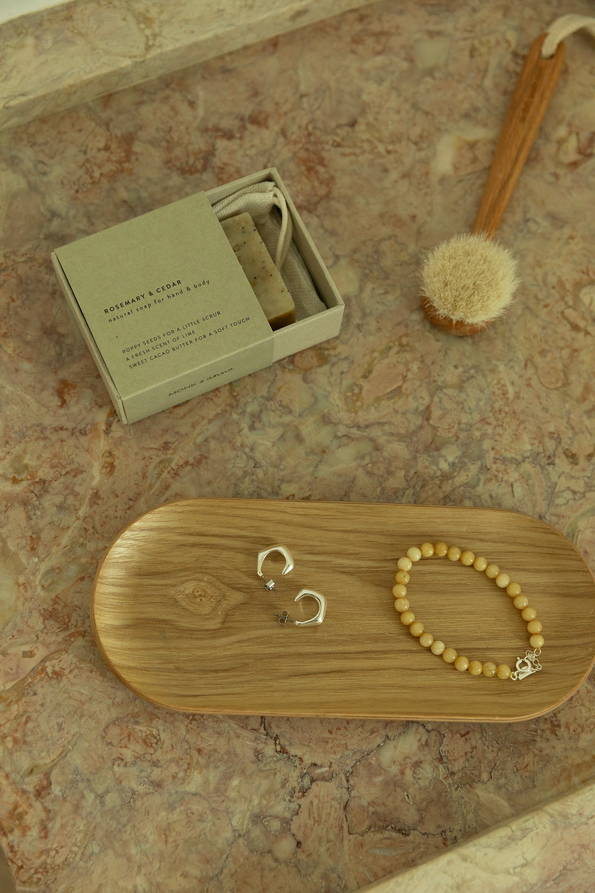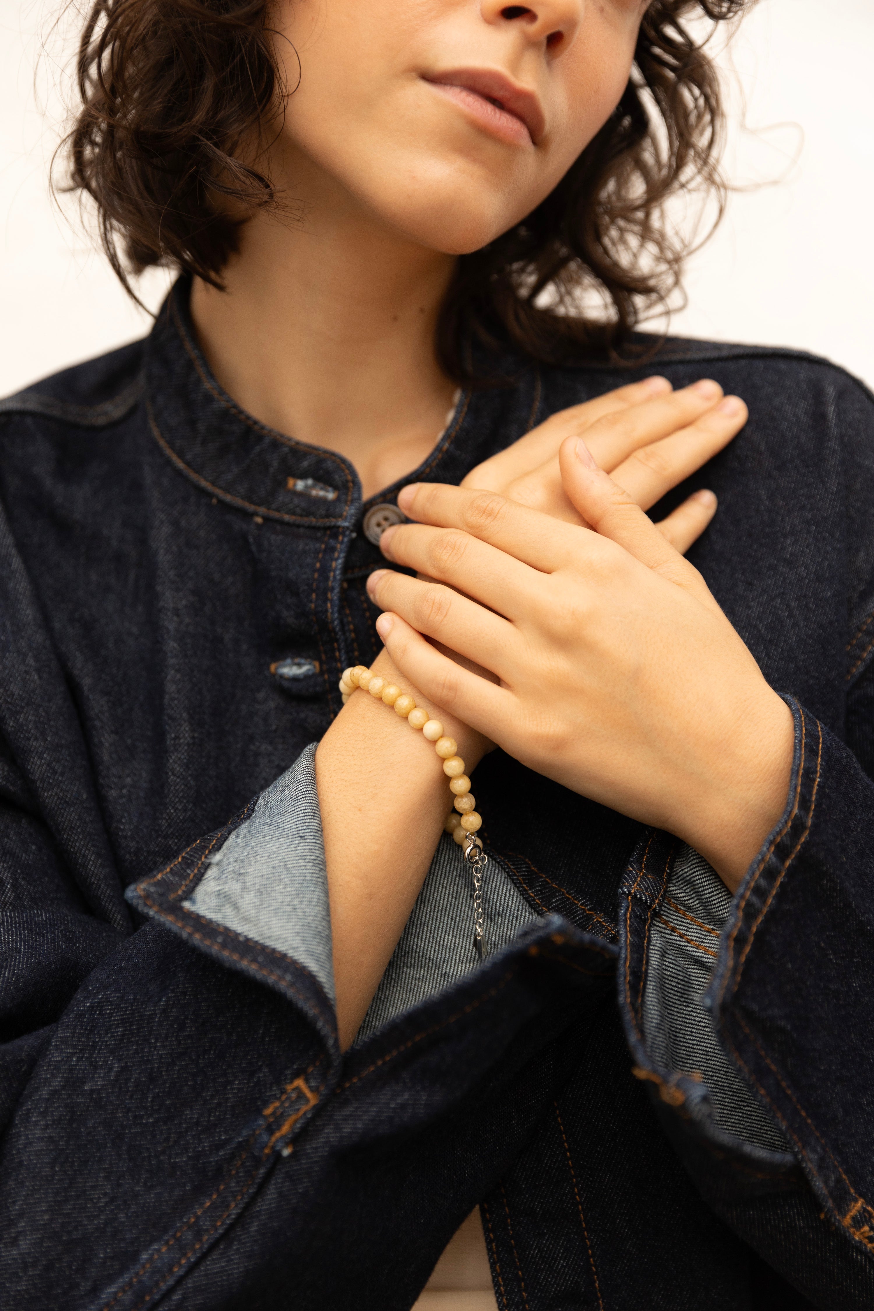 Bead bracelet, with silver closing which comes in a beautiful linen pouch making a perfect gift.