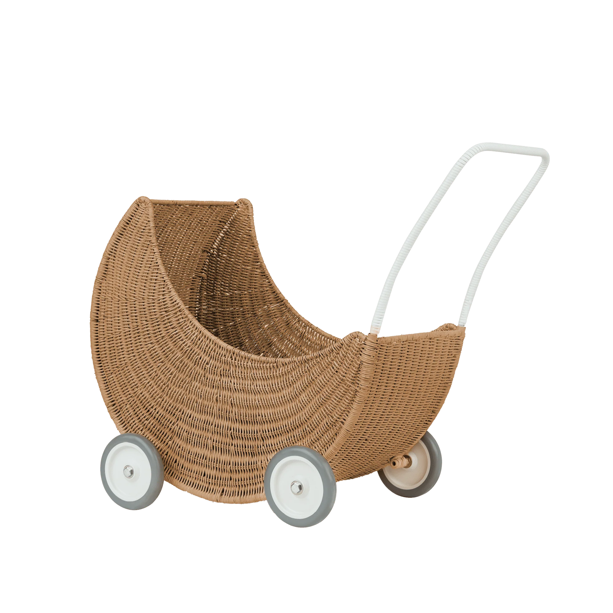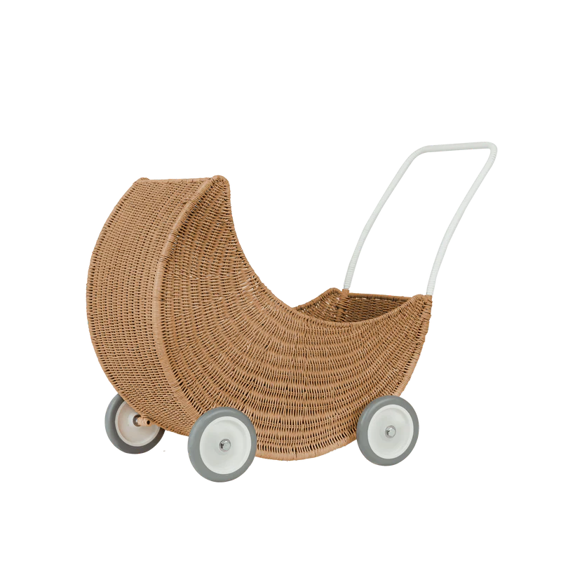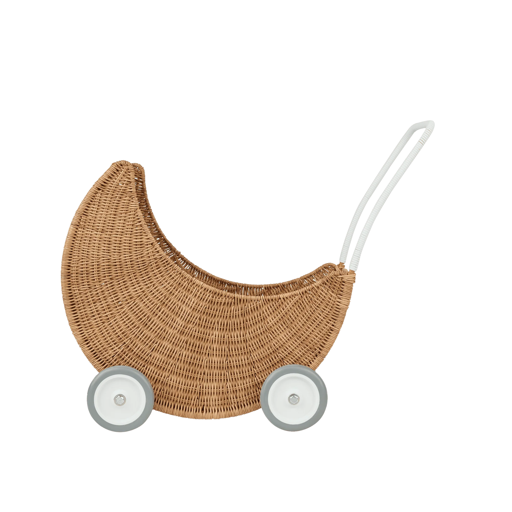 Crafted from natural rattan, this charming Moon Strolley is perfectly designed for imaginative play. The Moon Strolley features a beautifully woven frame, sturdy wheels for smooth rides, and a perfectly fits your dolls for all of their journeys.