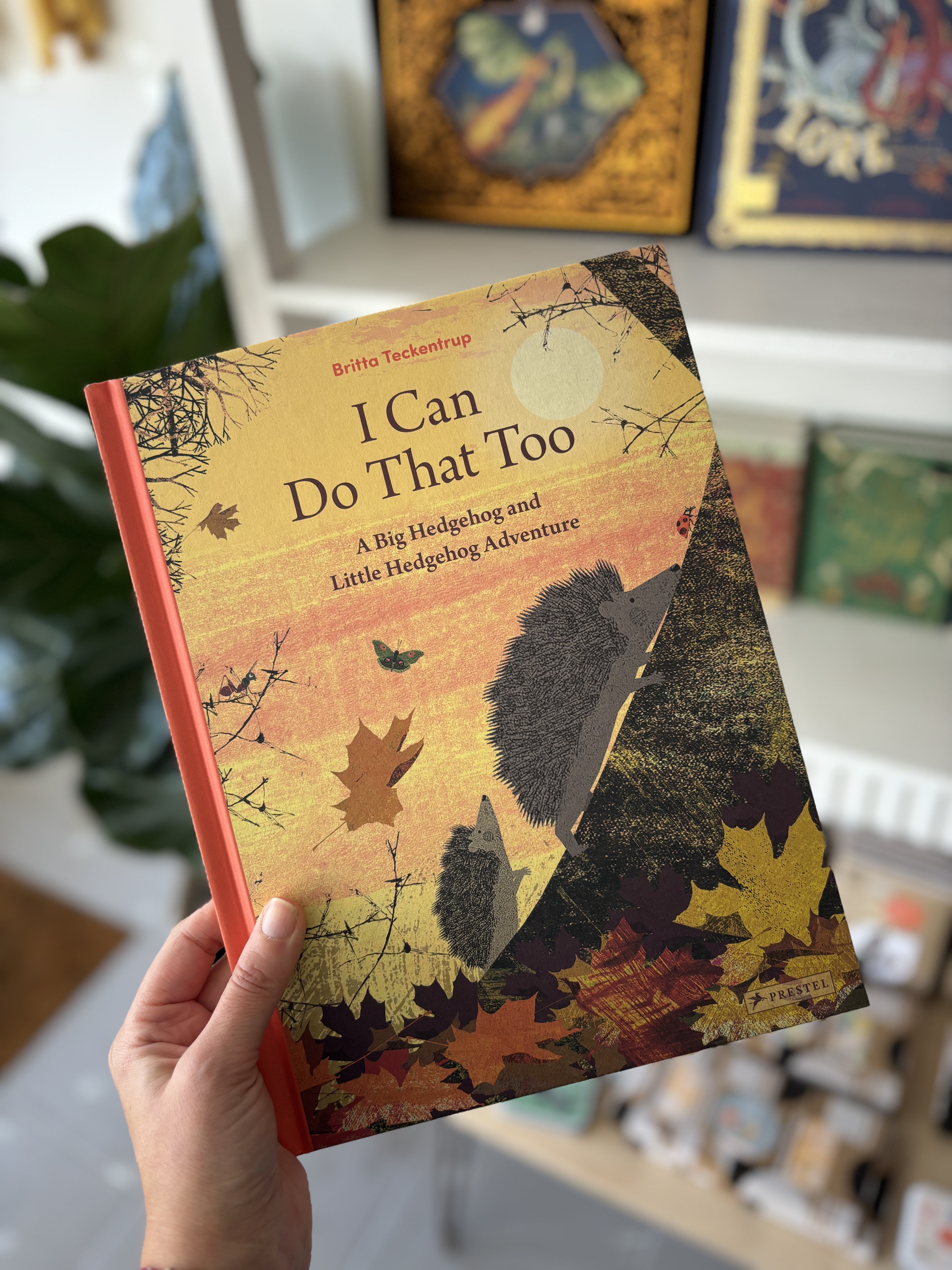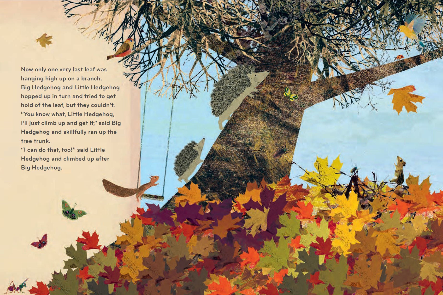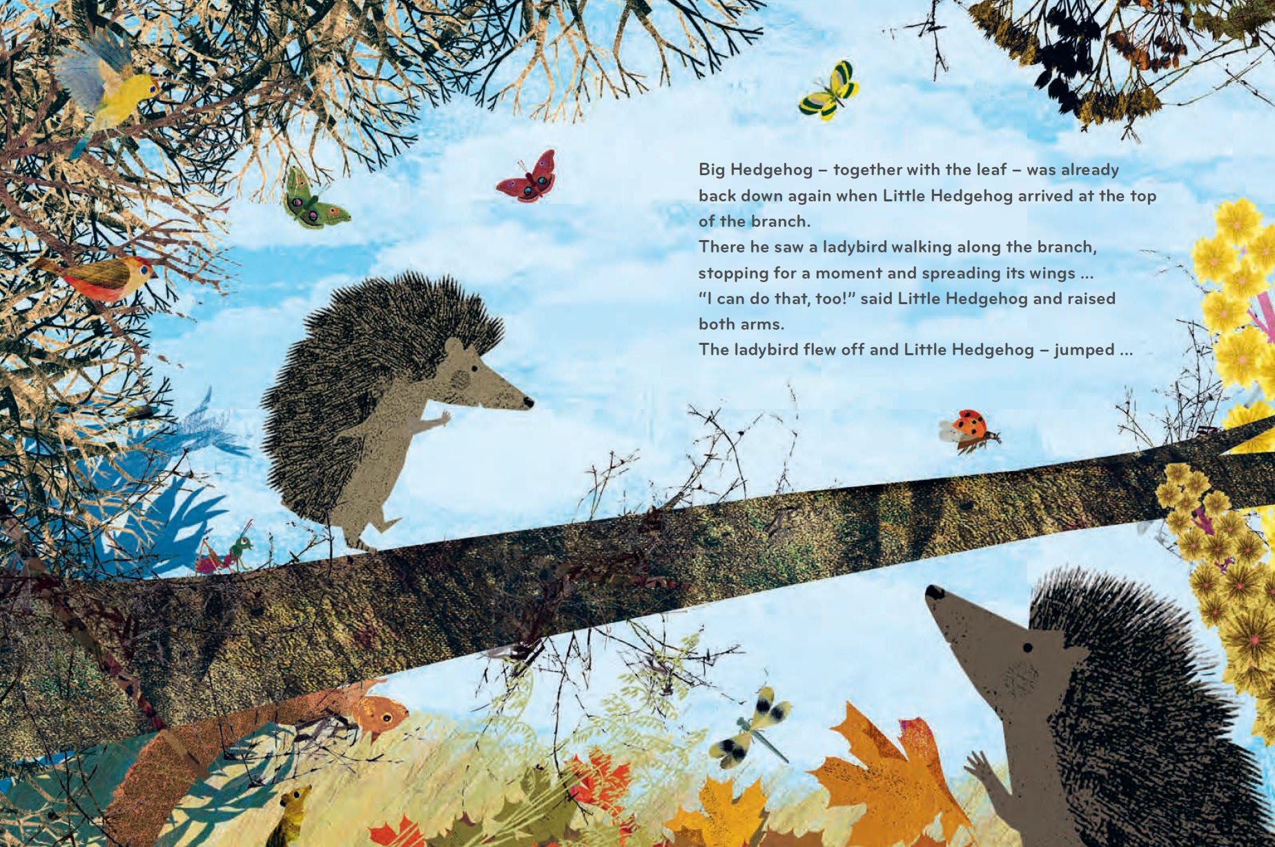 Today, in the woods, Big and Little Hedgehog are meeting some animal friends. Each of them can do something which Little Hedgehog wants to do himself. A ladybug can climb a tree and jump off a branch, a mole digs a hole, and fish swim in the pond. Little Hedgehog doesn’t always succeed, but he’s always keen to try something new. After the hedgehogs find their way home with the help of a turtle, an owl's hoot sends Little Hedgehog off to sleep with one last cry of "I can do that too!"