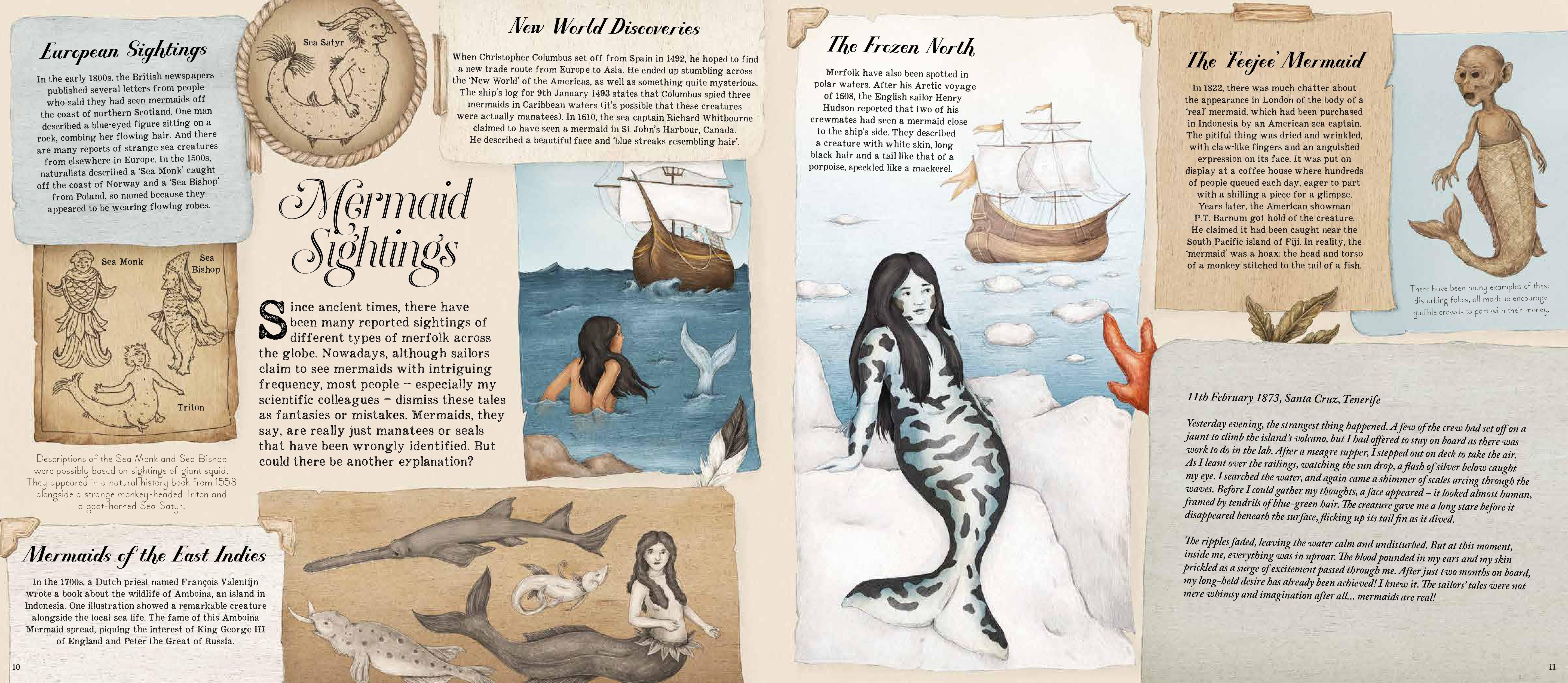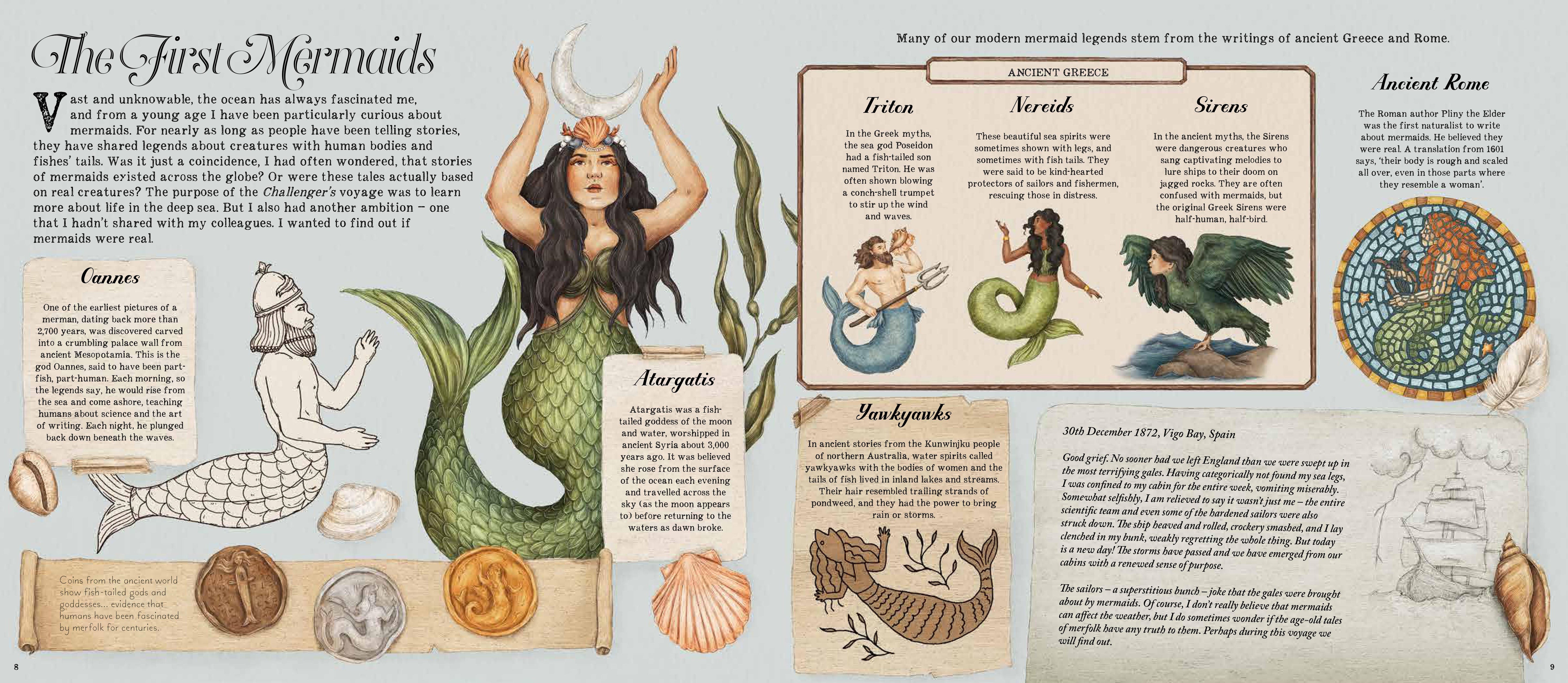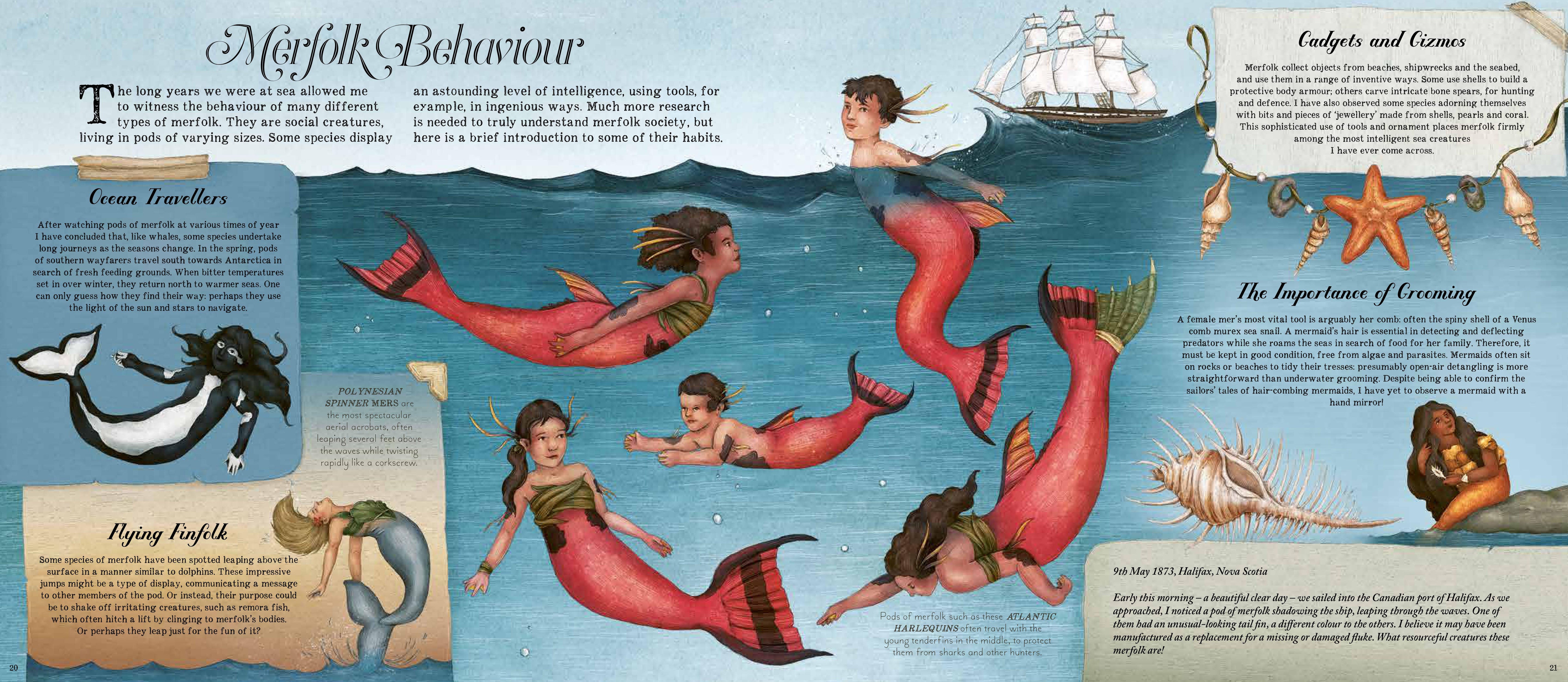 In 1872, intrepid (fictional) explorer Darcy Delamare disguised herself as a man to claim a place on board the (real life) scientific expedition of the HMS Challenger. She made a record of her findings on the trip, recounting the extraordinary sea creatures she witnessed: creatures that, until then, nobody had believed really existed... Children will delight in discovering the anatomy, behaviour and lifecycles of the Merfolk and how they have hidden themselves from human discovery over millennia.