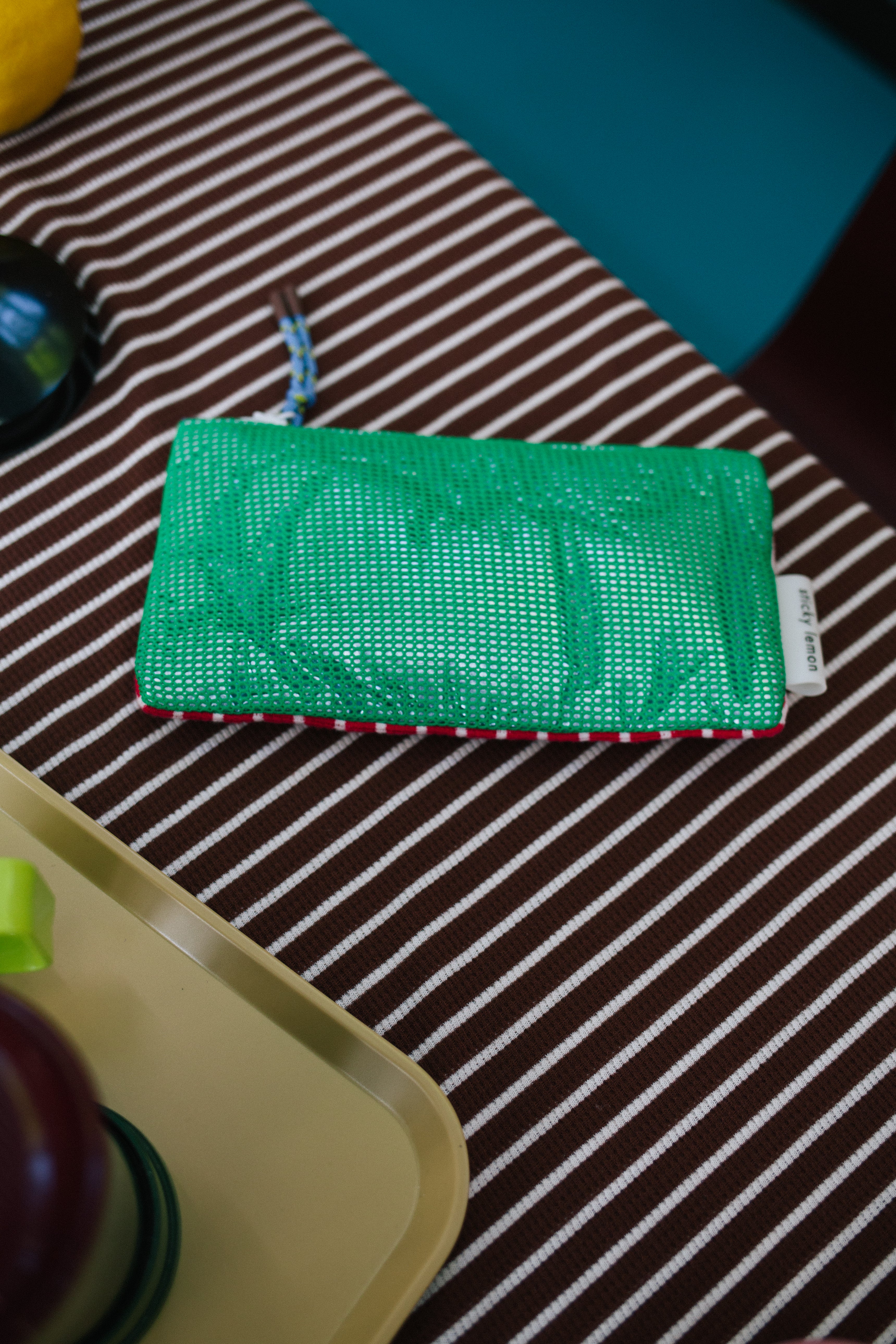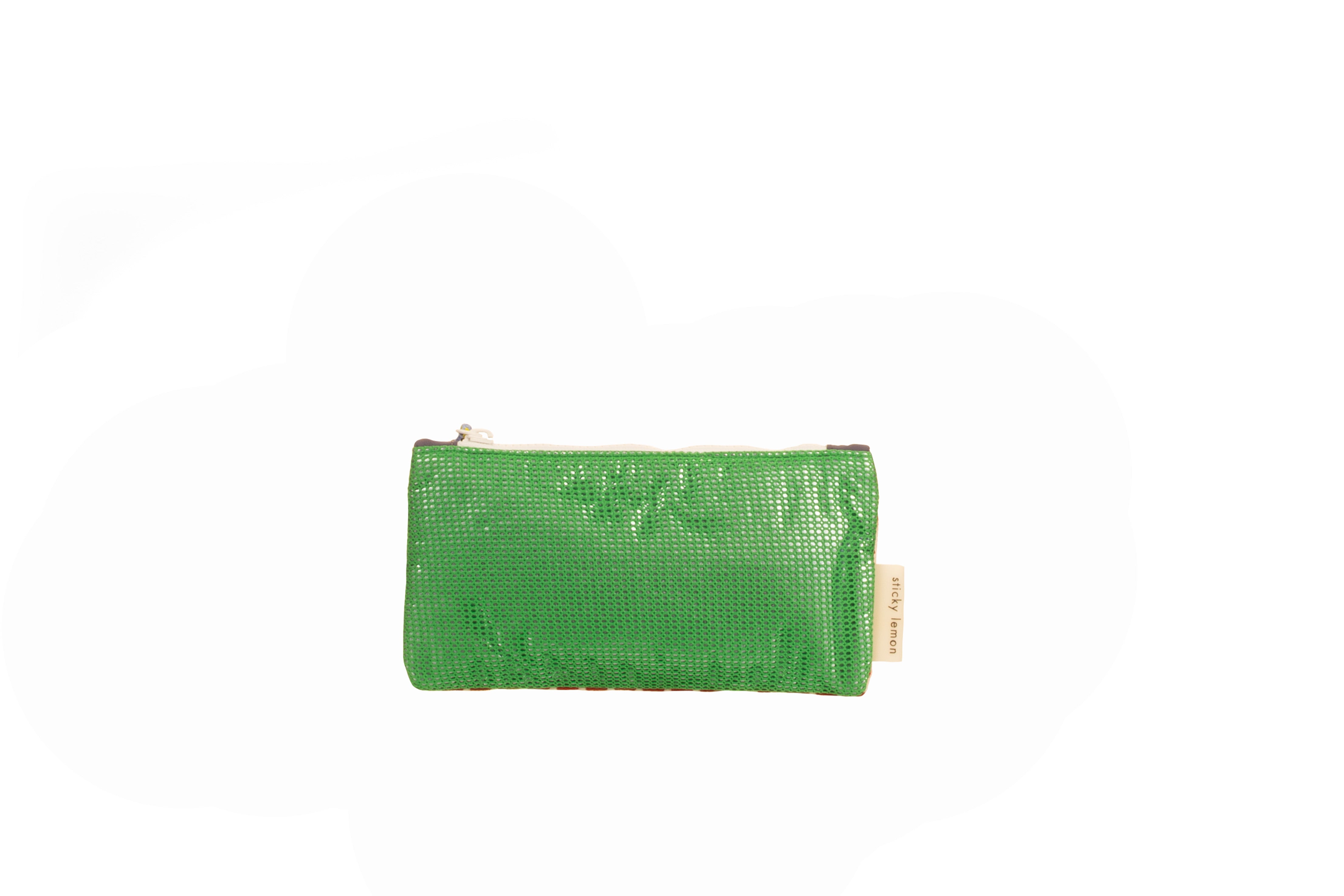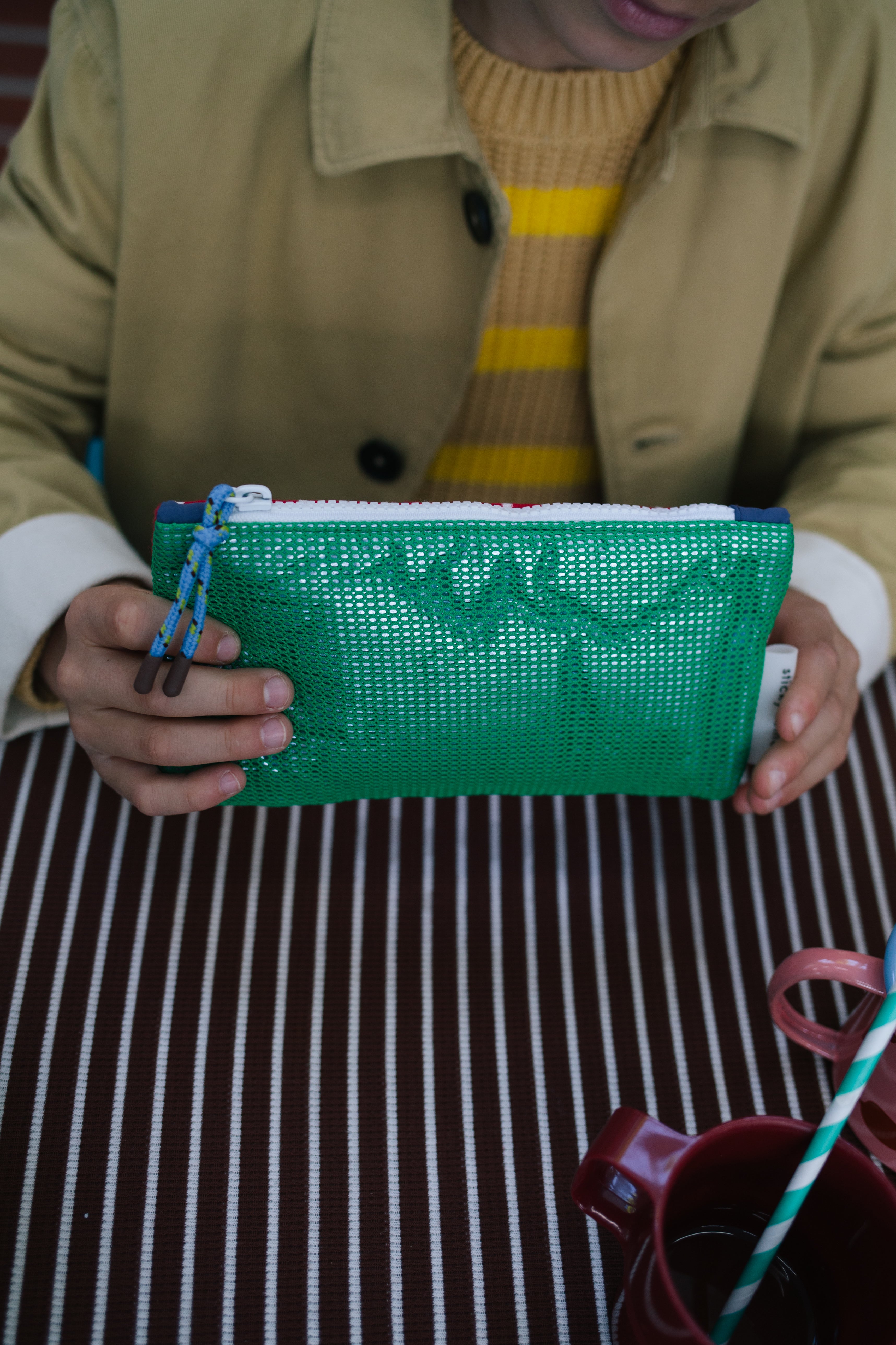 A mix of mesh, metallic and a knitted fabric makes this pencilcase stand out! The lining is waterproof and the zippers from YKK.