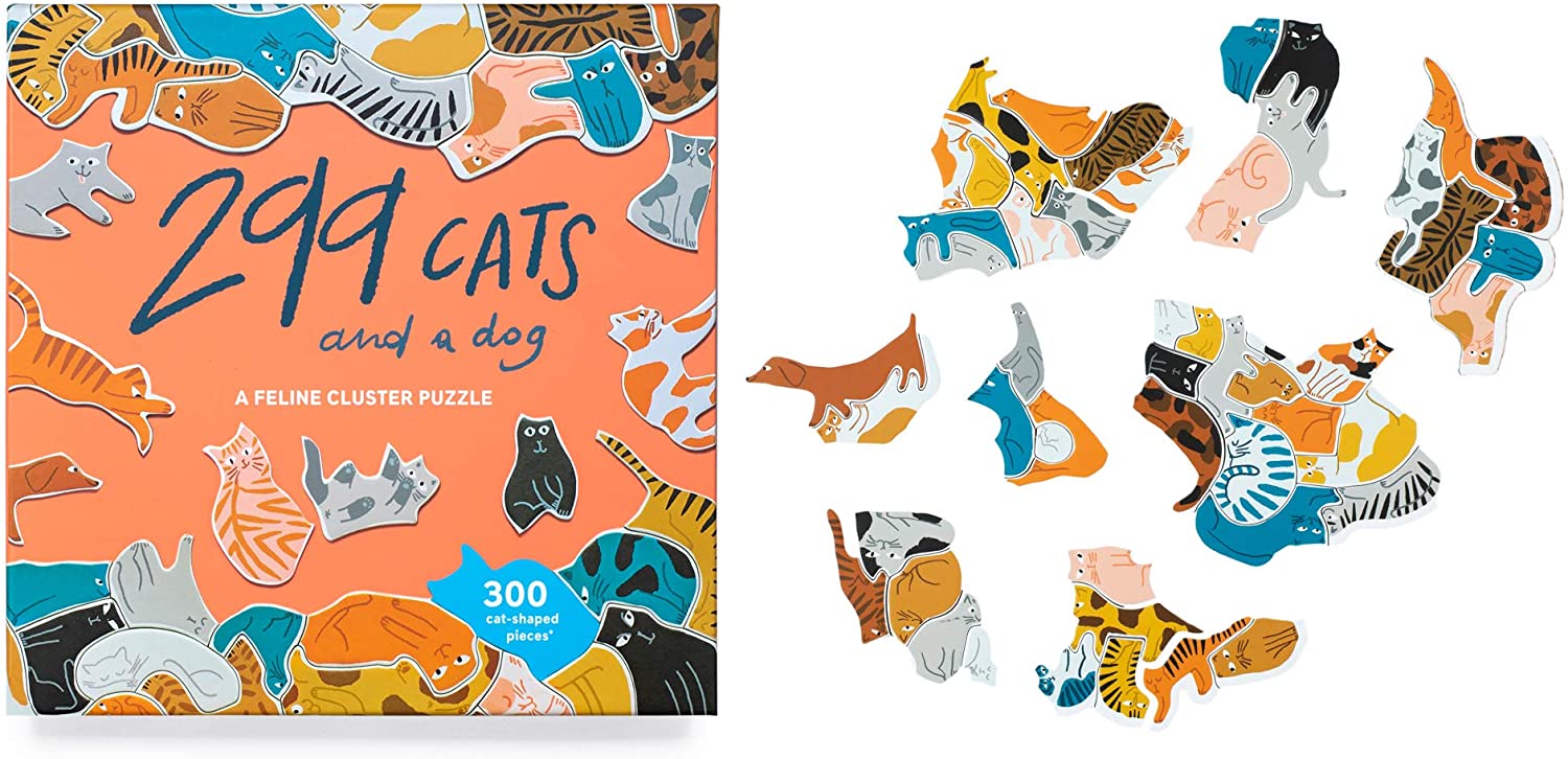 Have you got what it takes to assemble all 299 cats into a perfect puzzle? In this cunning cluster puzzle, there are no regular jigsaw shapes: each piece takes the outline of the cat itself. And there are 299 of them - plus a dog. See if you can find it!