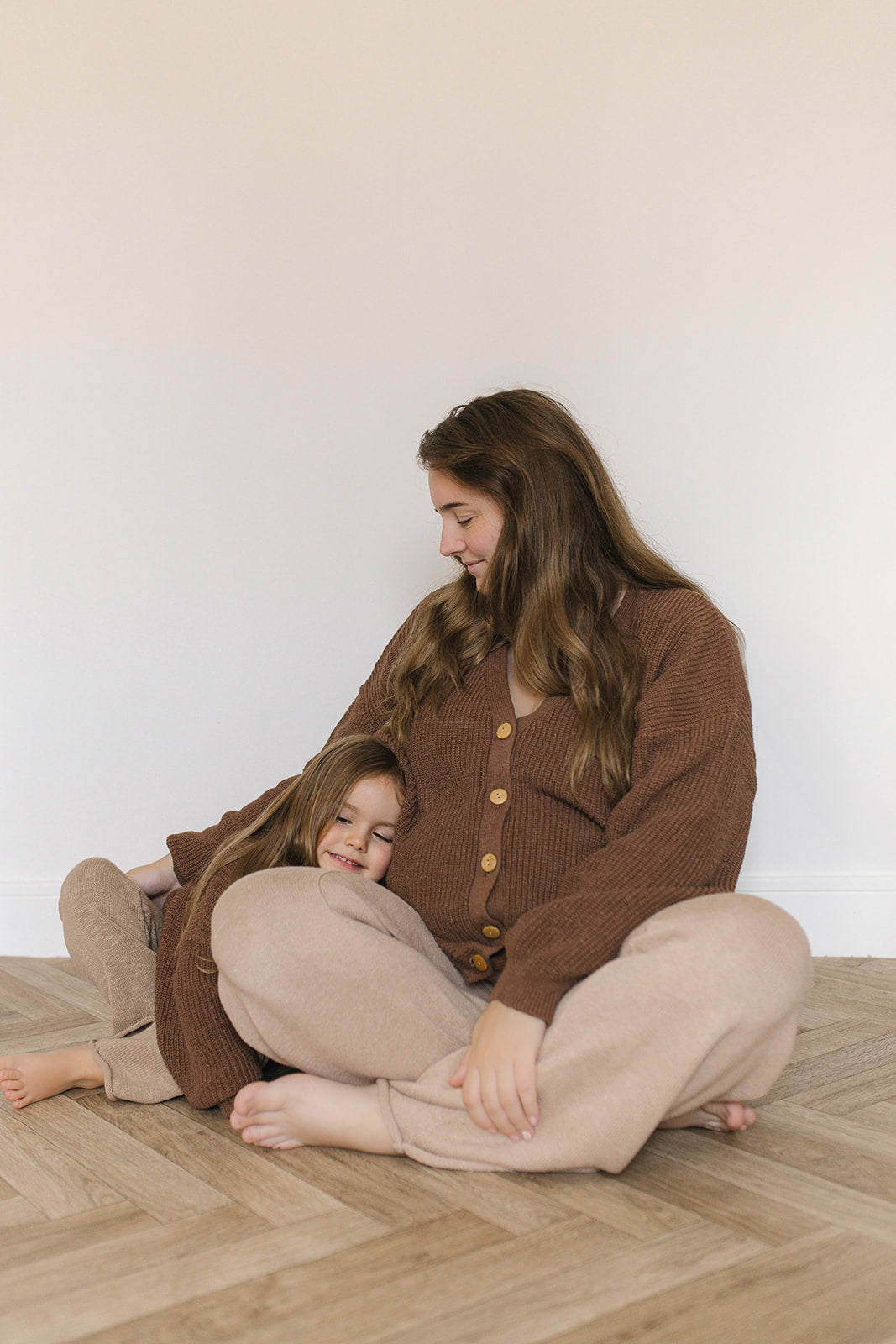Chunky ribbed cardigan in a cosy Teddy texture with a dropped shoulder and slouchy, oversized fit. In a rich Cocoa brown with wooden buttons.