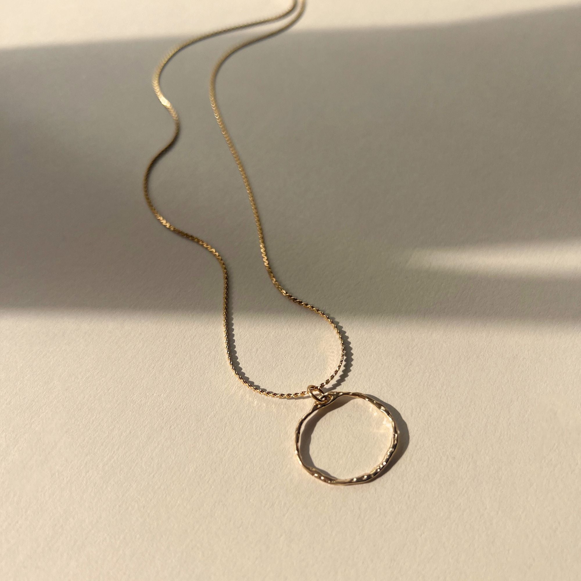 A simple and modern delicate chain featuring a hammered circle charm. Add an effortless style update your wardrobe with this minimalistic necklace. Can be worn alone or layered with your other favourite necklaces.
