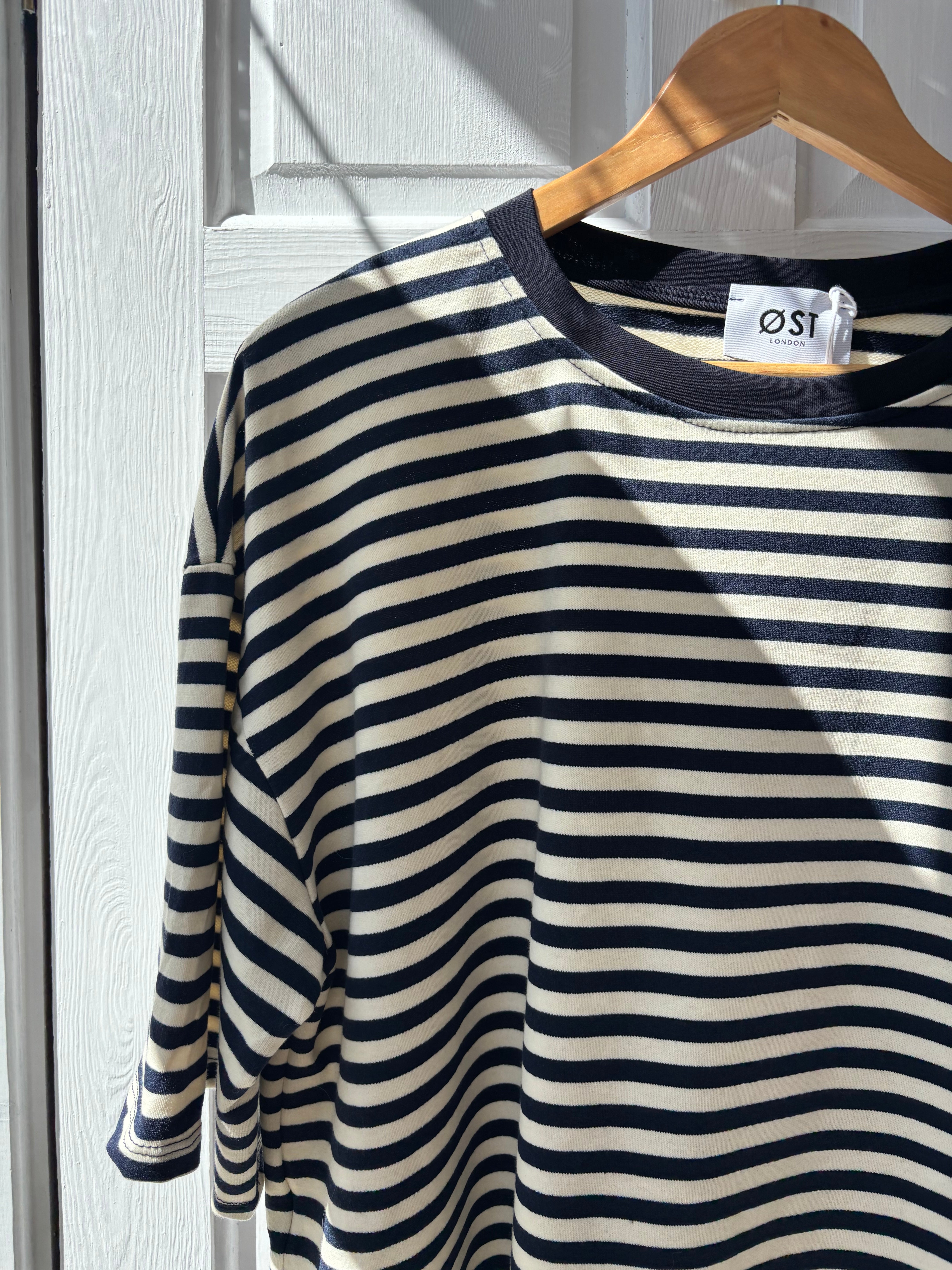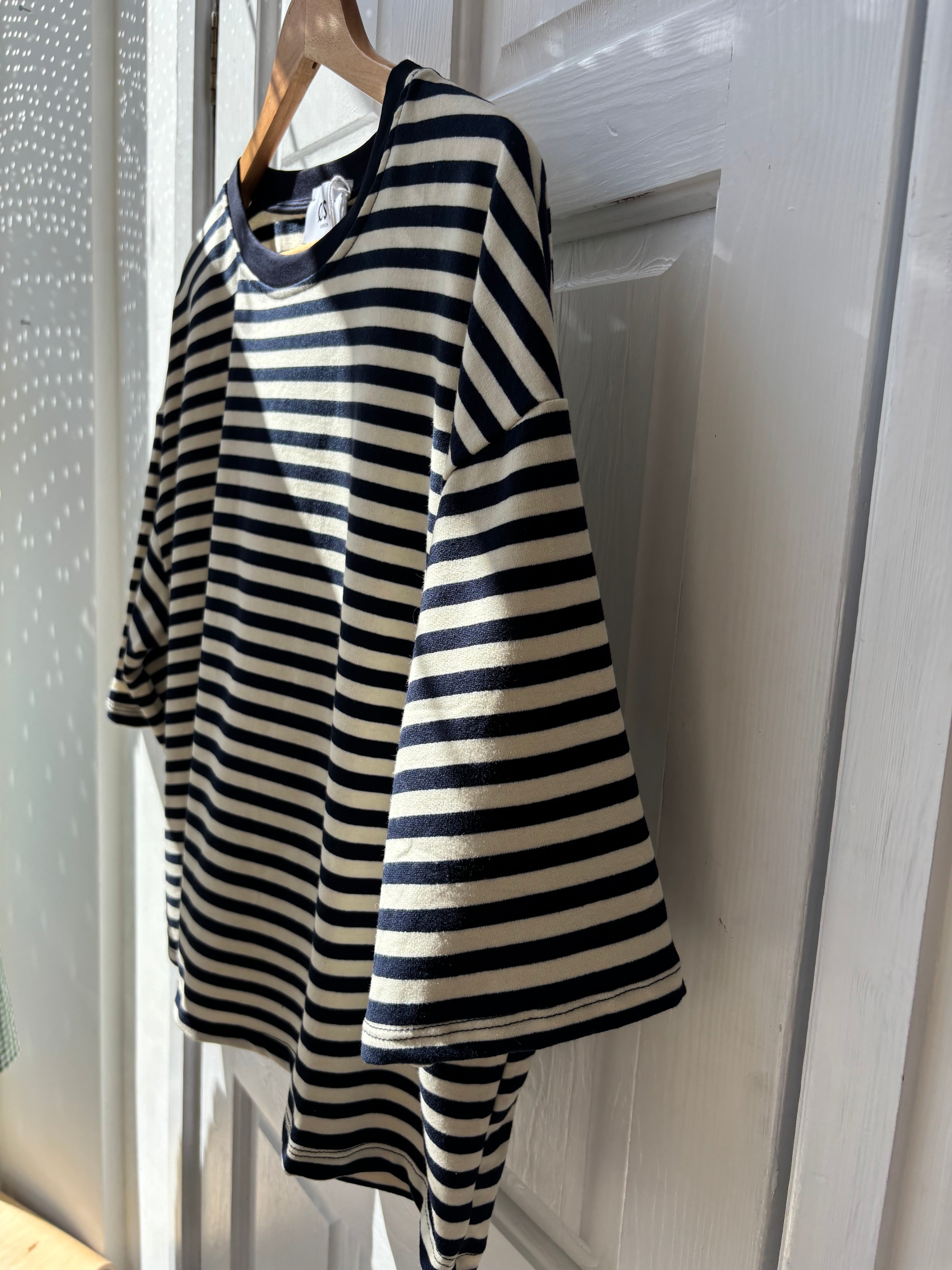 Relaxed-fit striped crewneck - a soft, breathable staple you’ll reach for again and again. One size the t-shirt is designed with a slightly boxy silhouette and short sleeves with a dropped shoulder for an effortless drape. It’s the kind of top that looks good with absolutely everything.