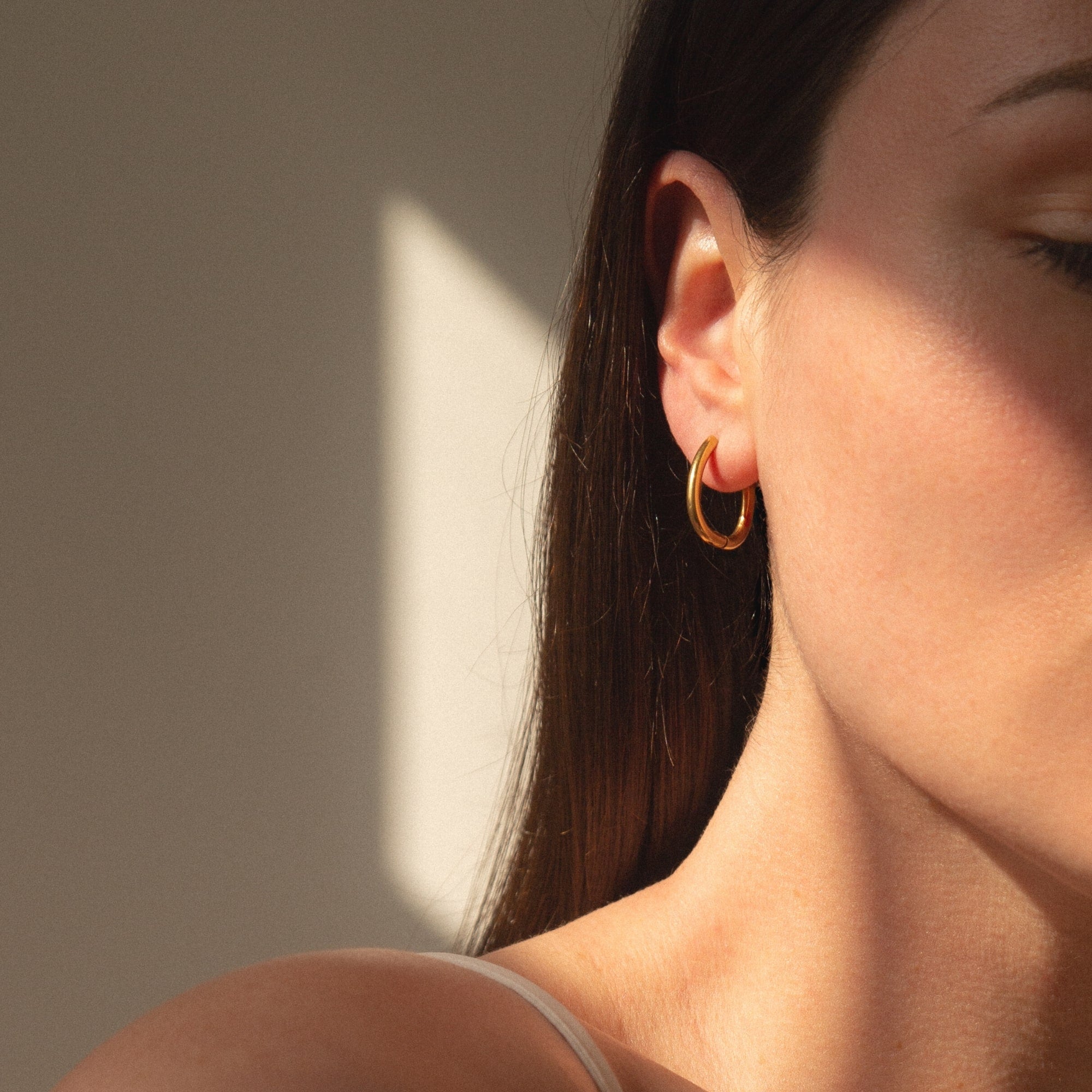 Simple, modern and clean design, perfect for the everyday. Team with other hoops from our luxe collection for the ultimate stacked look.