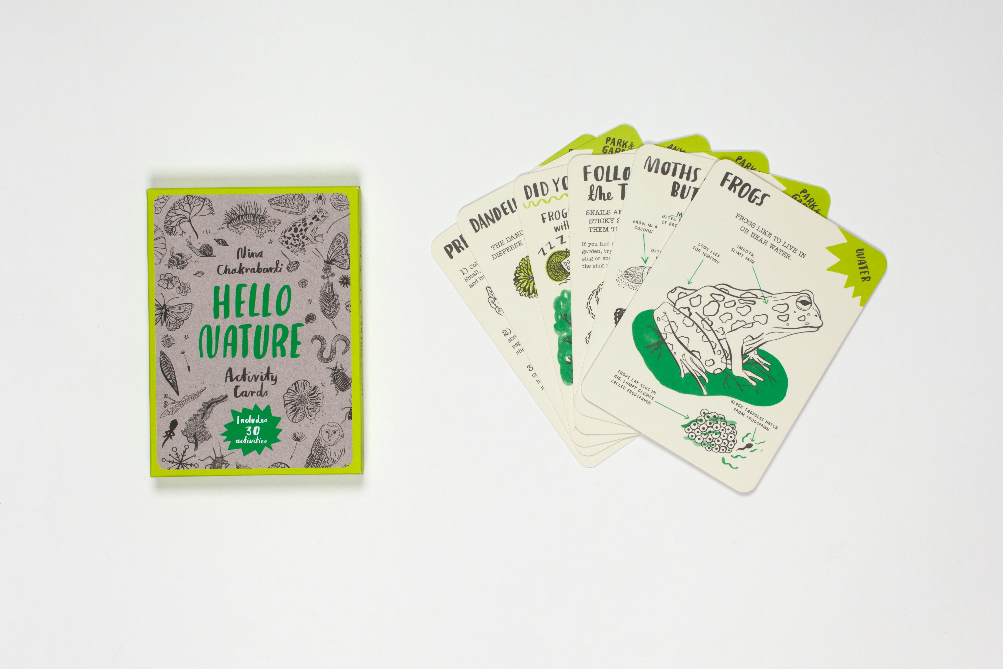Can you identify a tree from its seed? How is a frog different from a toad? And where can you find the Big Dipper? Explore the natural world around you using these activity cards based on the book Hello Nature. Take them with you while walking in the woods, holidaying on the beach or just pottering in your own back garden. With over 40 activities to try, from making feather quill pens and boats made of nutshells, to creating helicopter-seed dragonflies, there is fun for all the family.