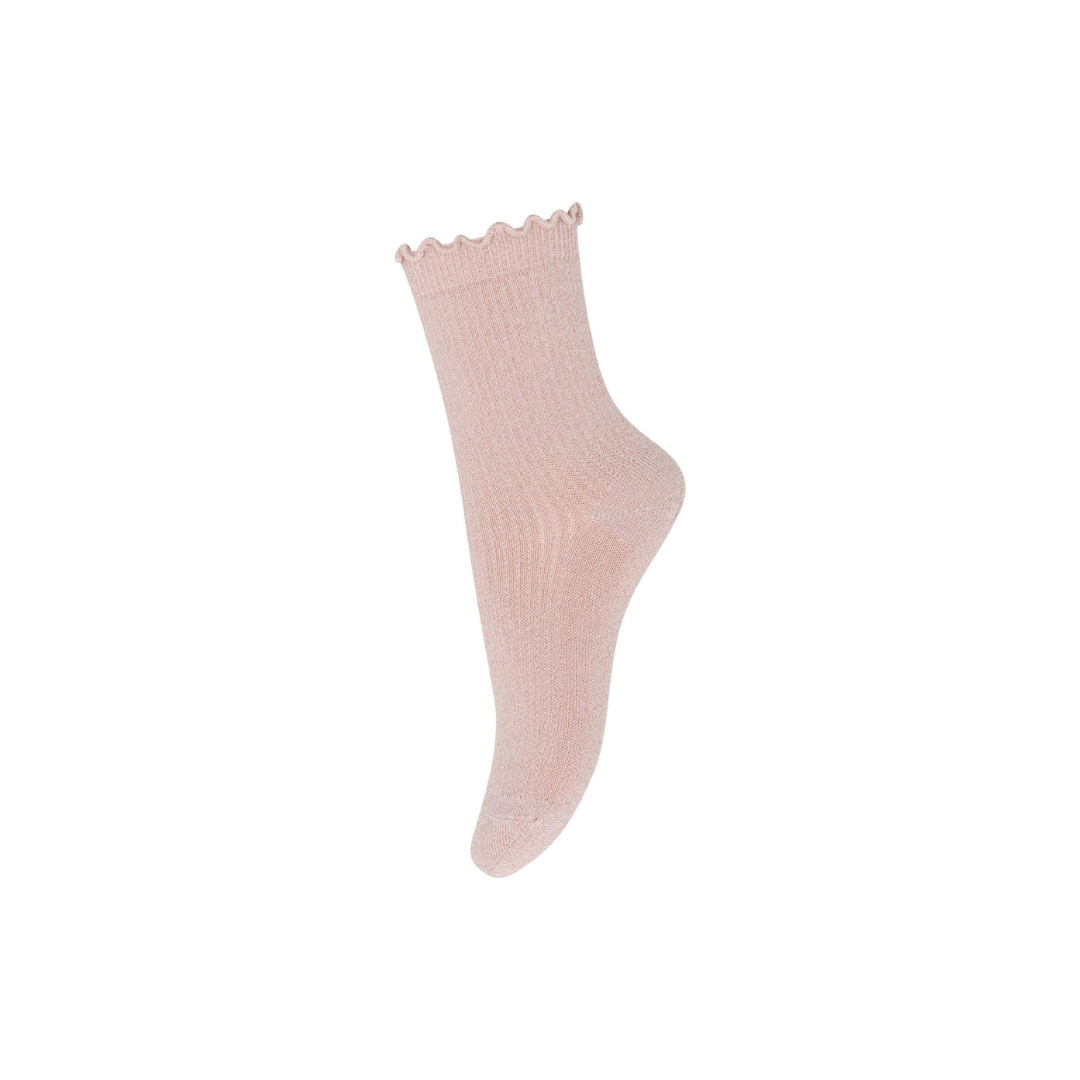Classic solid-colored glitter sock in a super soft quality that does not scratch. The ankle sock has a nice wavy detail on the top edge and a high quality elastic holds the sock well in place. Reinforced heel and toe ensures long durability and a soft and smooth seam inside toe gives high comfort.