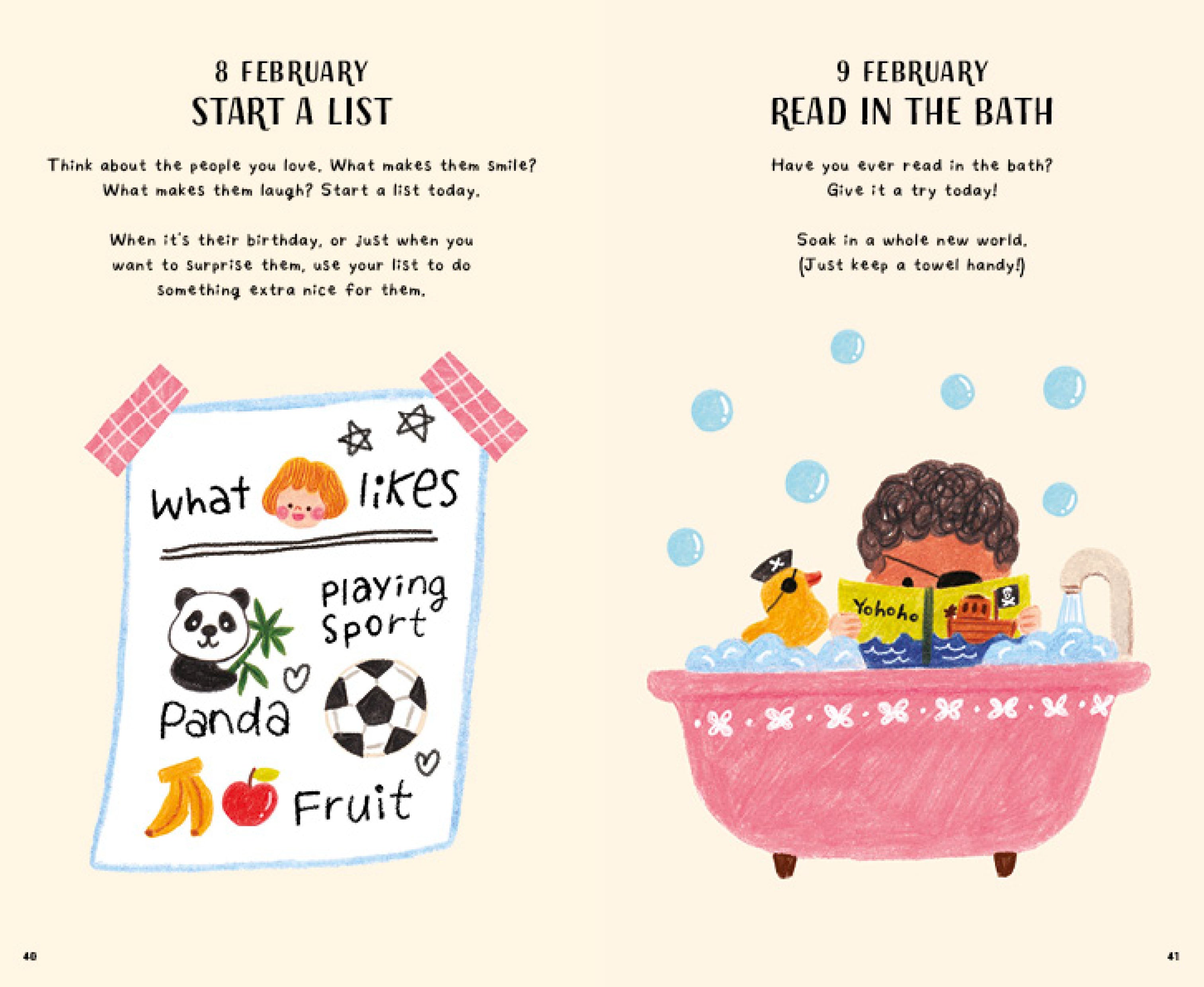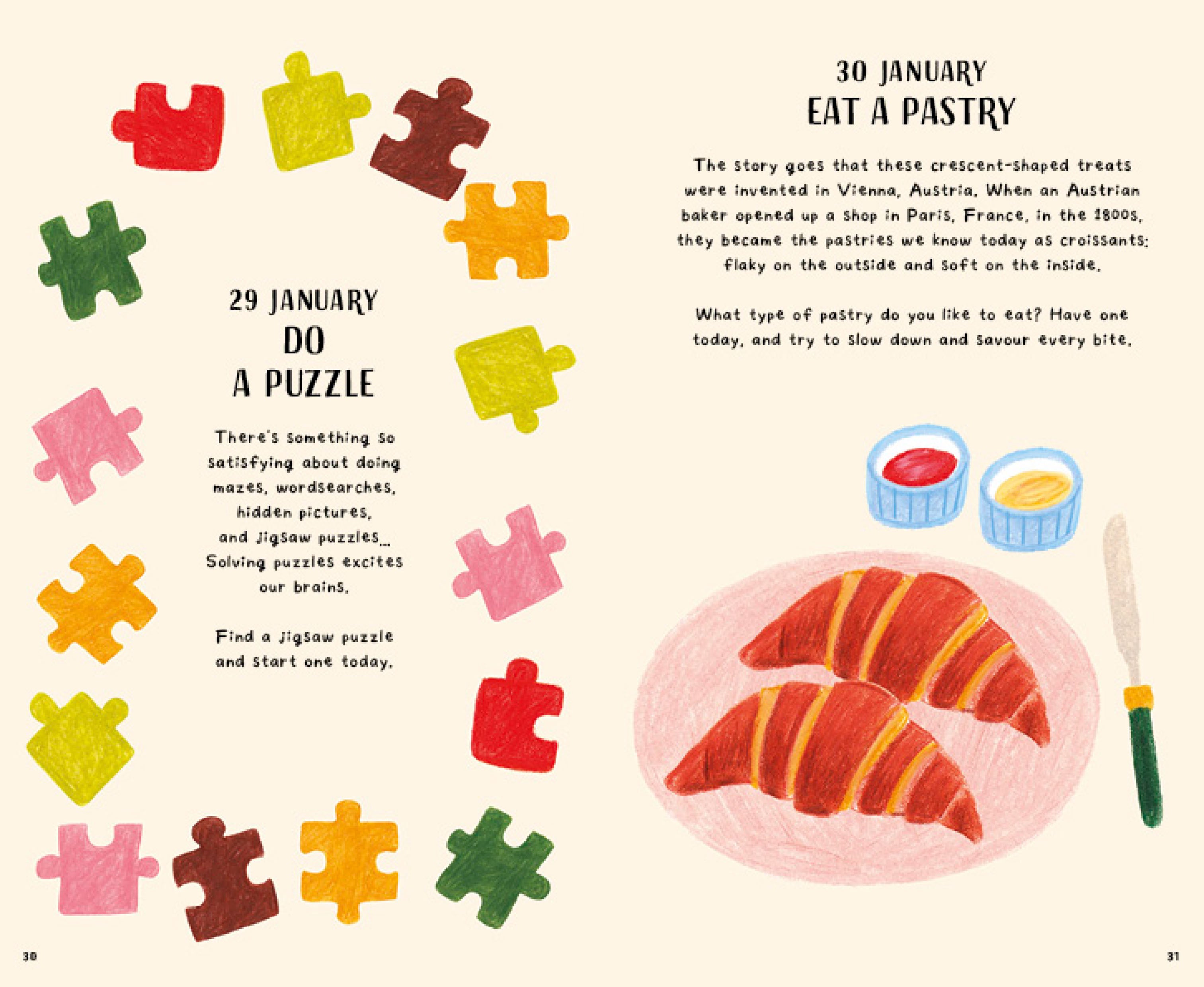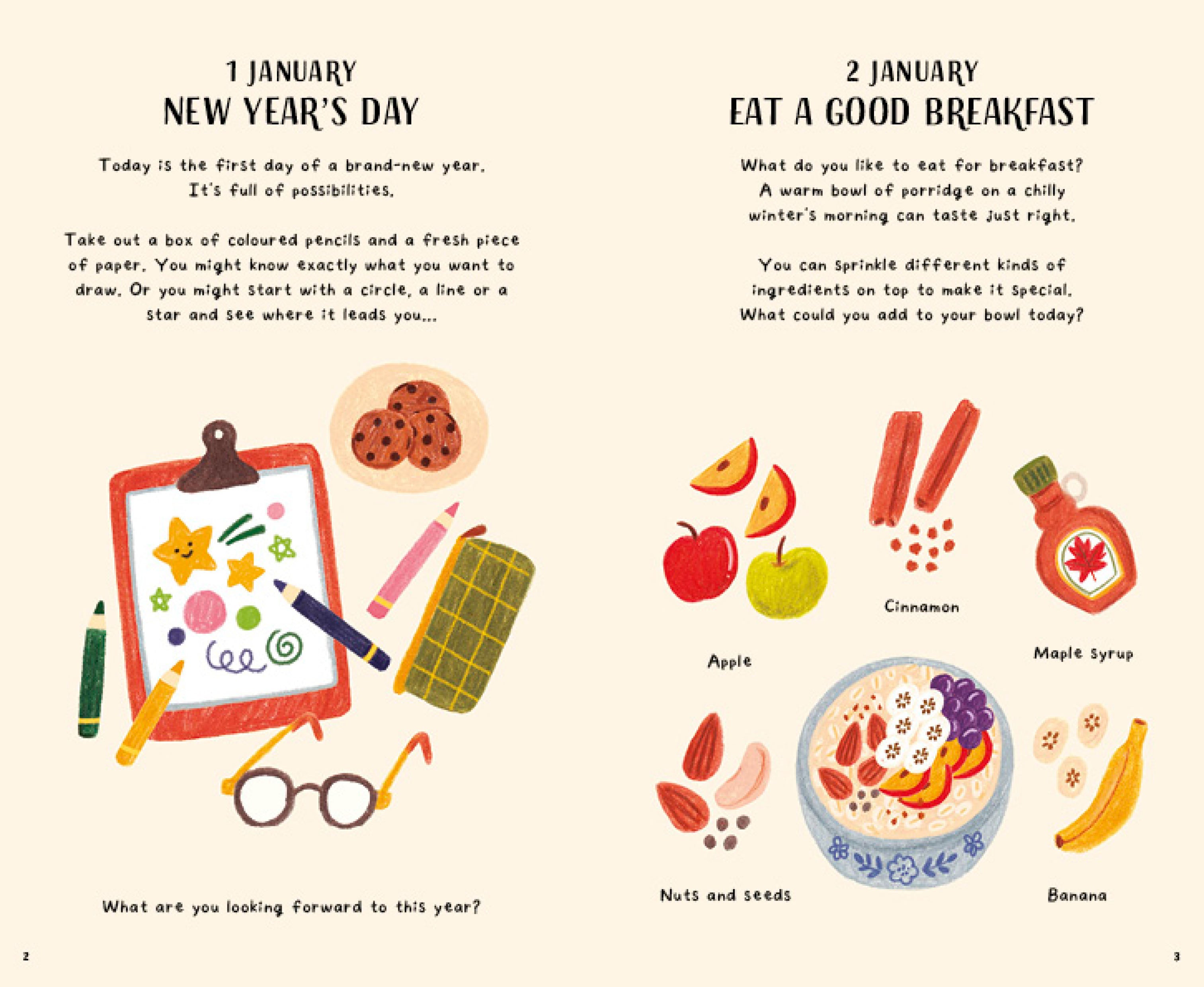 Discover a different way to find happiness every day of the year with this fabulous book that celebrates little things that bring great joy. Be inspired by famous people on their birthdays; learn how to spot and find flowers throughout each season; create your own gratitude jar; learn how to make pastries; make a gift for someone you love; discover the pleasure of letter writing; and find joy in a rainy day. Packed with art activities, famous birthdays, inventions, international holidays, facts, and trivia about the world around us.